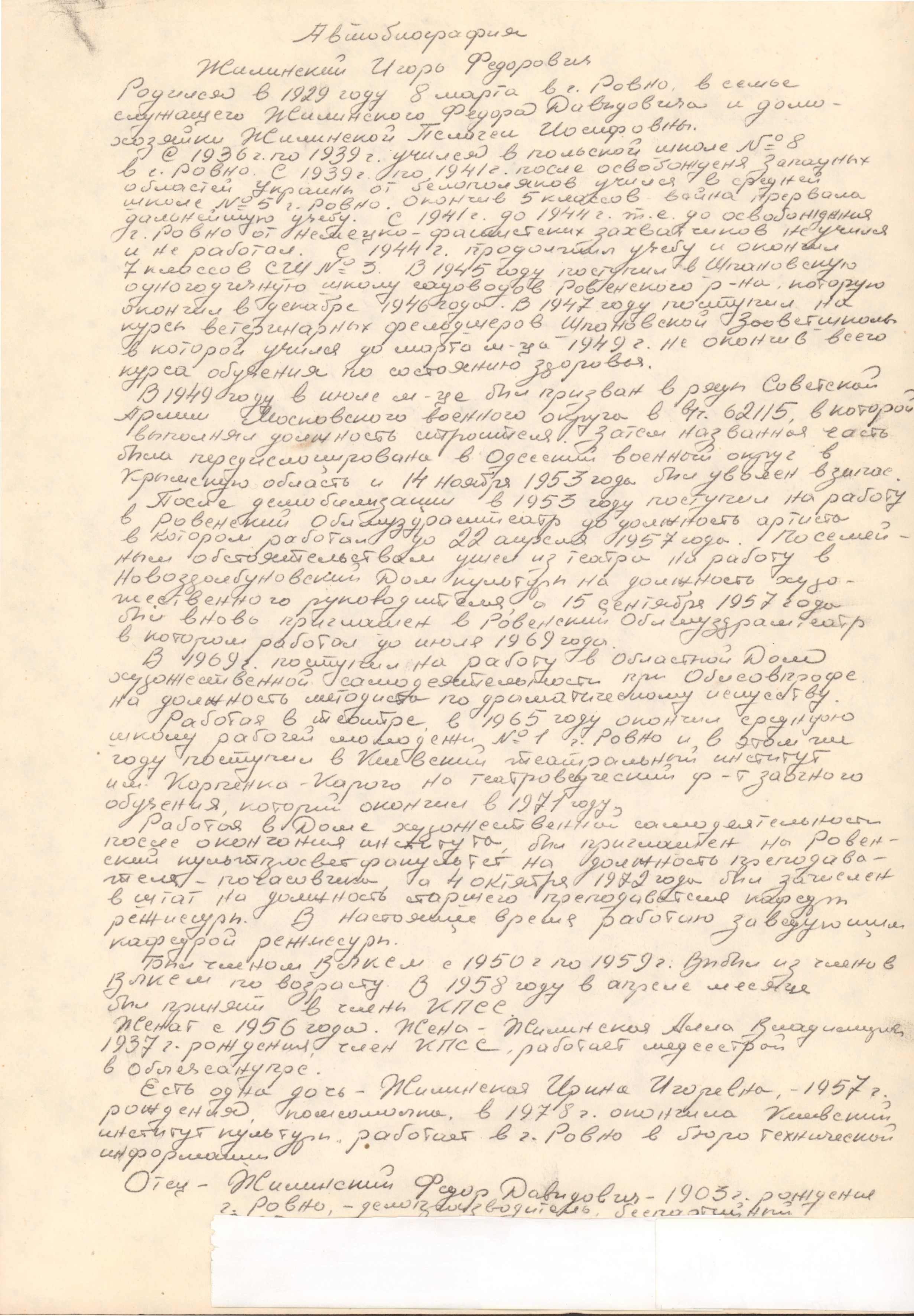 - 1939 – 1941 рр. – навчався в середній школі № 5 м. Рівне. Здійснив перші спроби акторської гри на сцені.