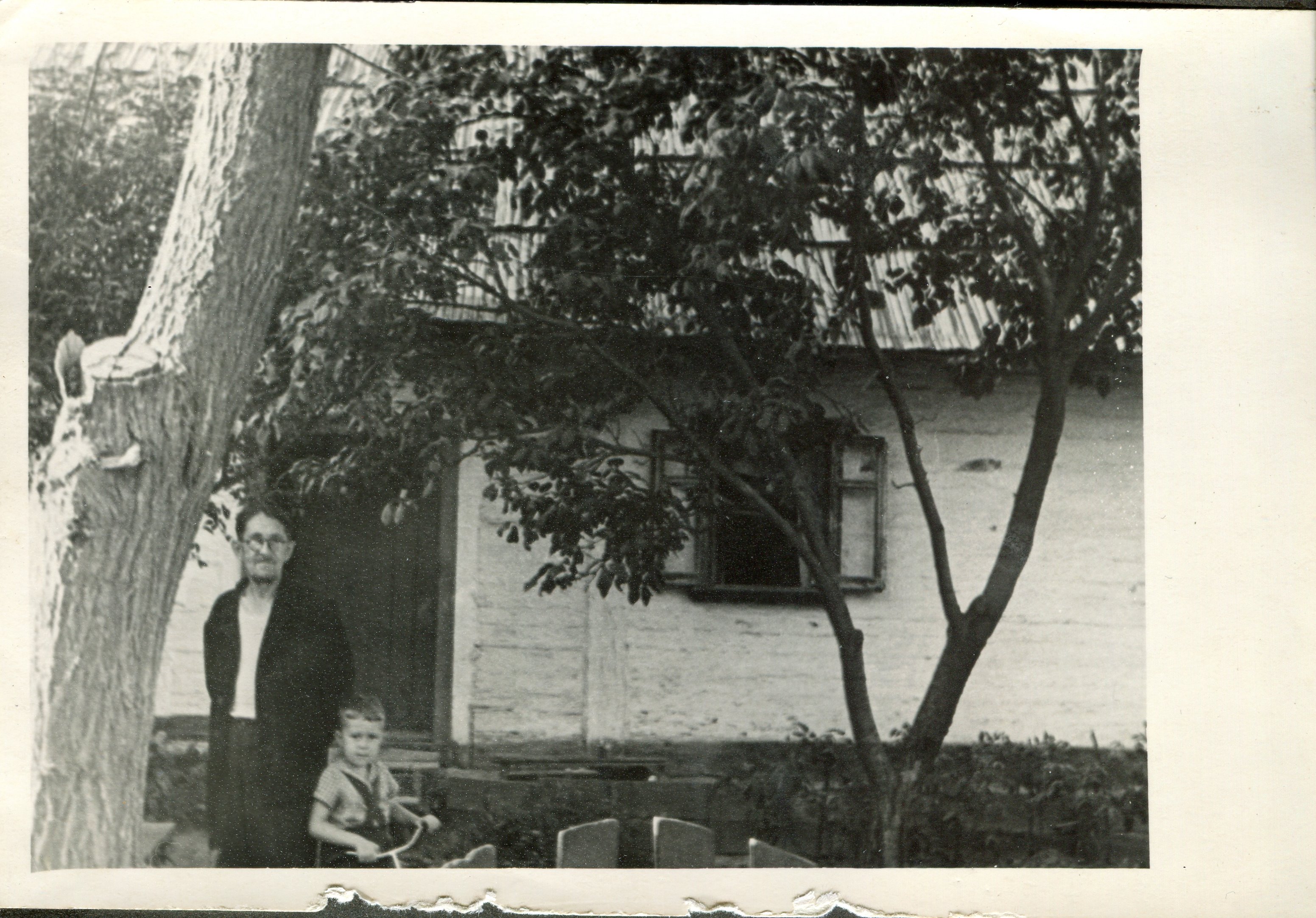 Федір Жилінський з сином (ймовірно з Мефодієм) біля свого будинку, 1940-ові роки -