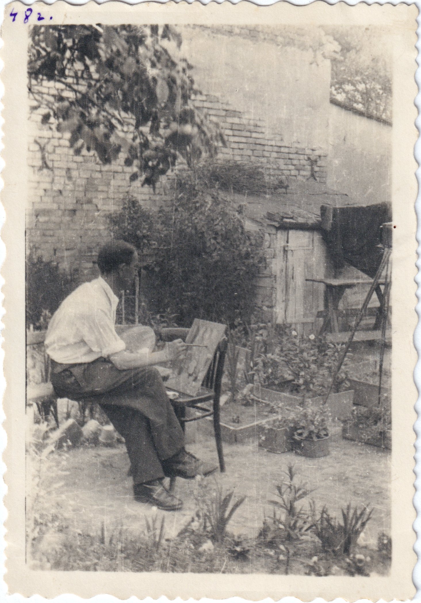 Федір Жилінський малює в дворі будинку, 1940-ові роки -