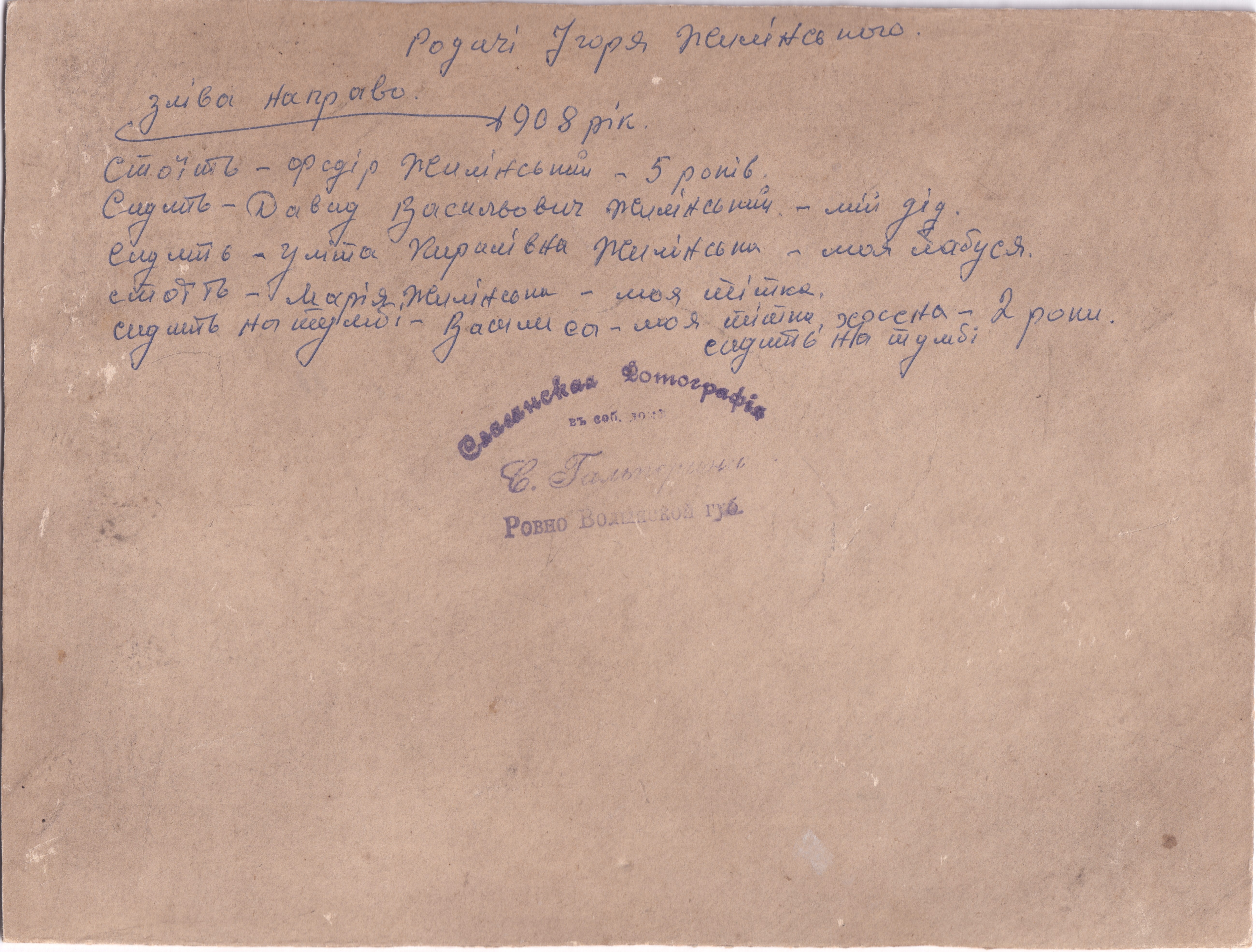 Зворотня сторона фото родини Жилінських -