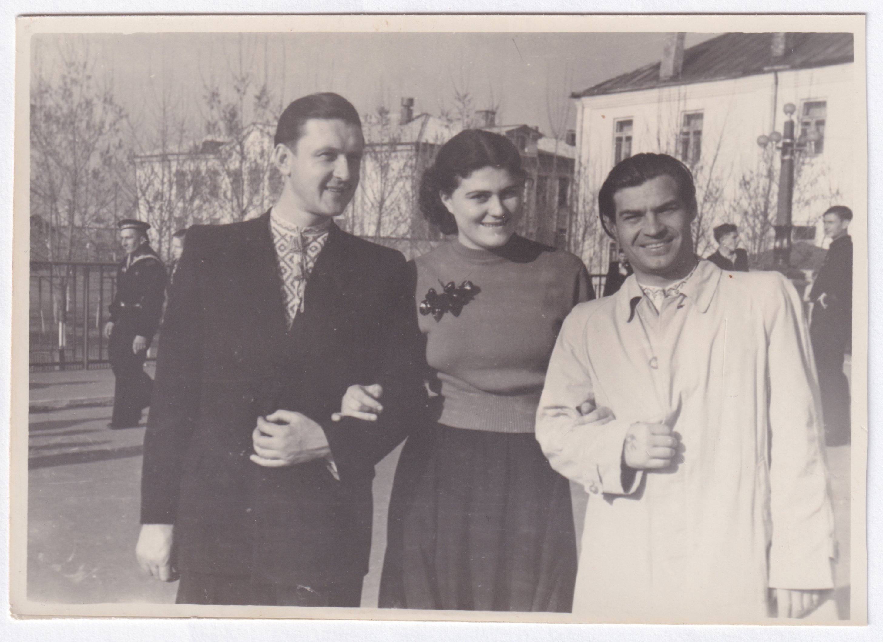 Ігор Жилінський з братами біля будинку, 1945 рік -