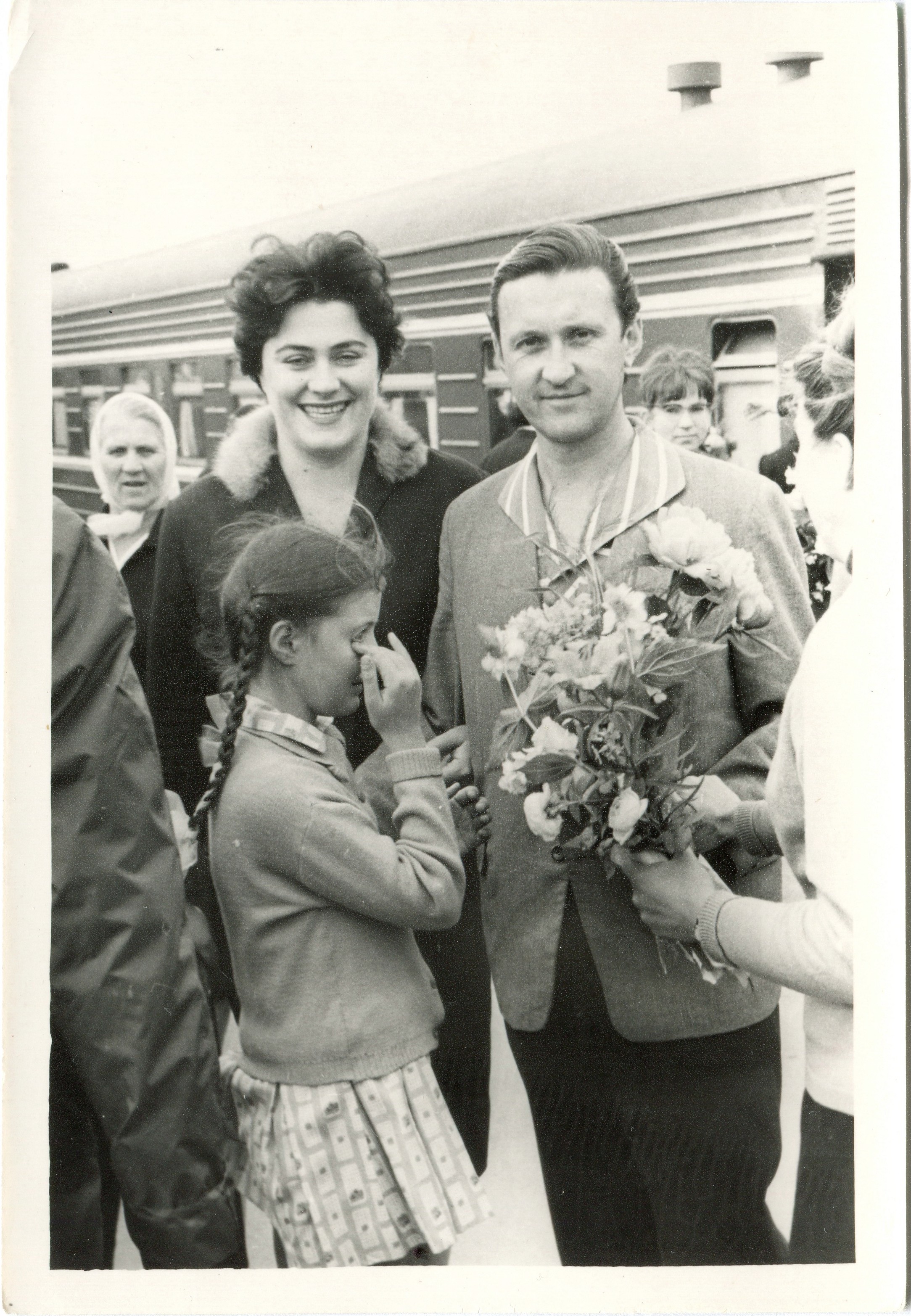 Щемлива зустріч, дружина Алла та донька Ірина зустрічають Ігоря Жилінського з гастролей, 1960-ті роки -