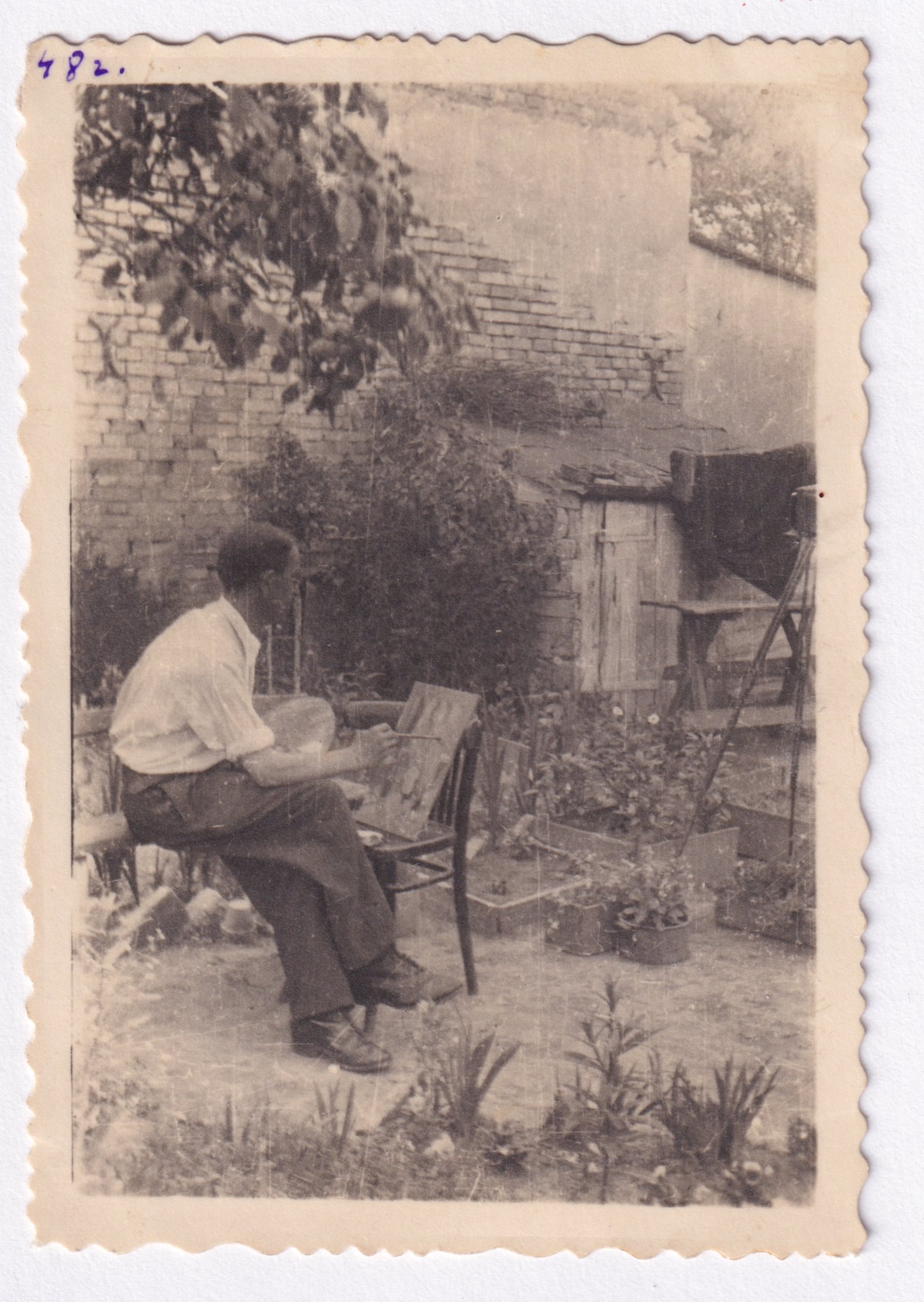 Підпис під фото: Федір Жилінський малює в дворі будинку, 1940-ві рр.