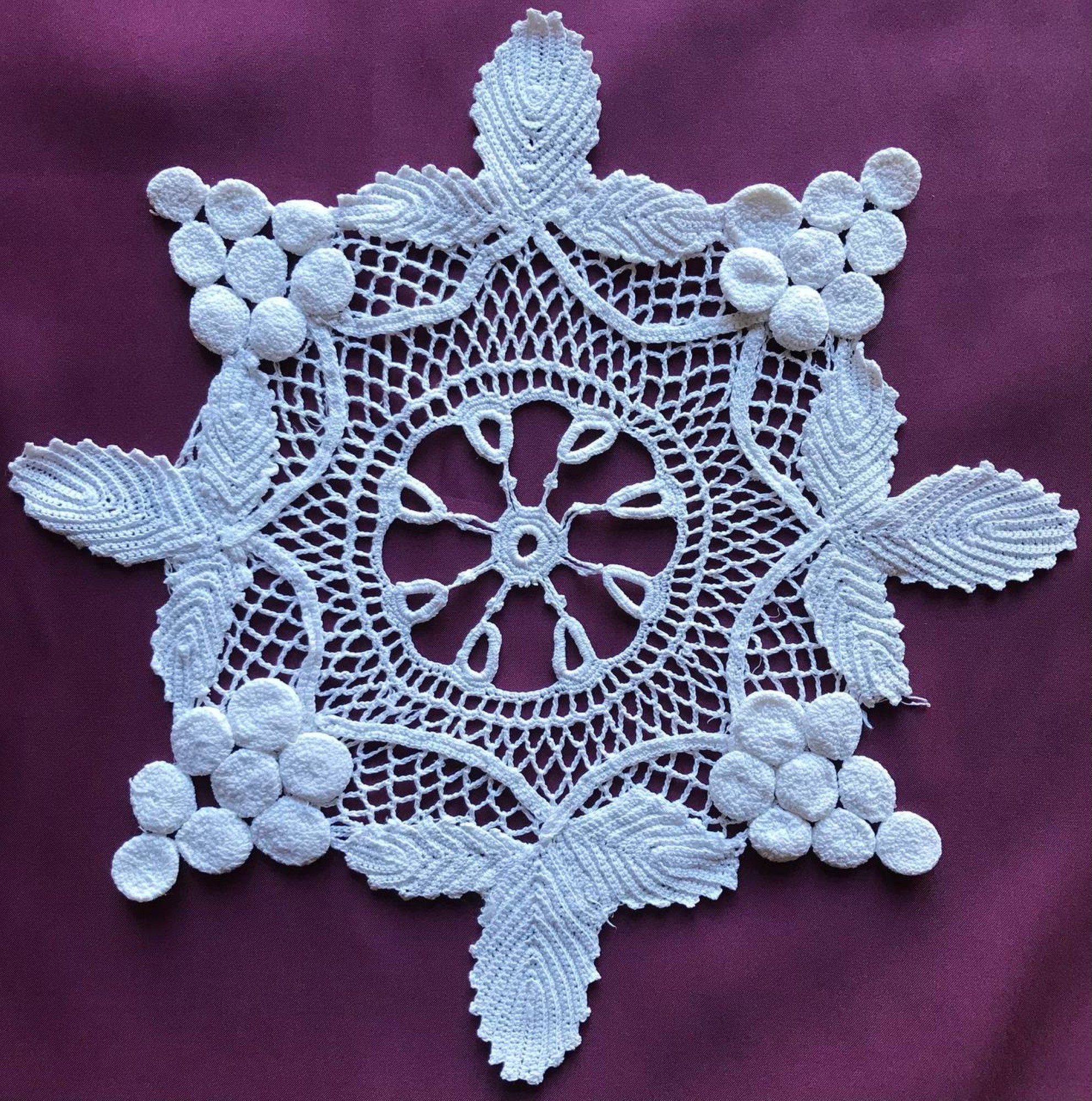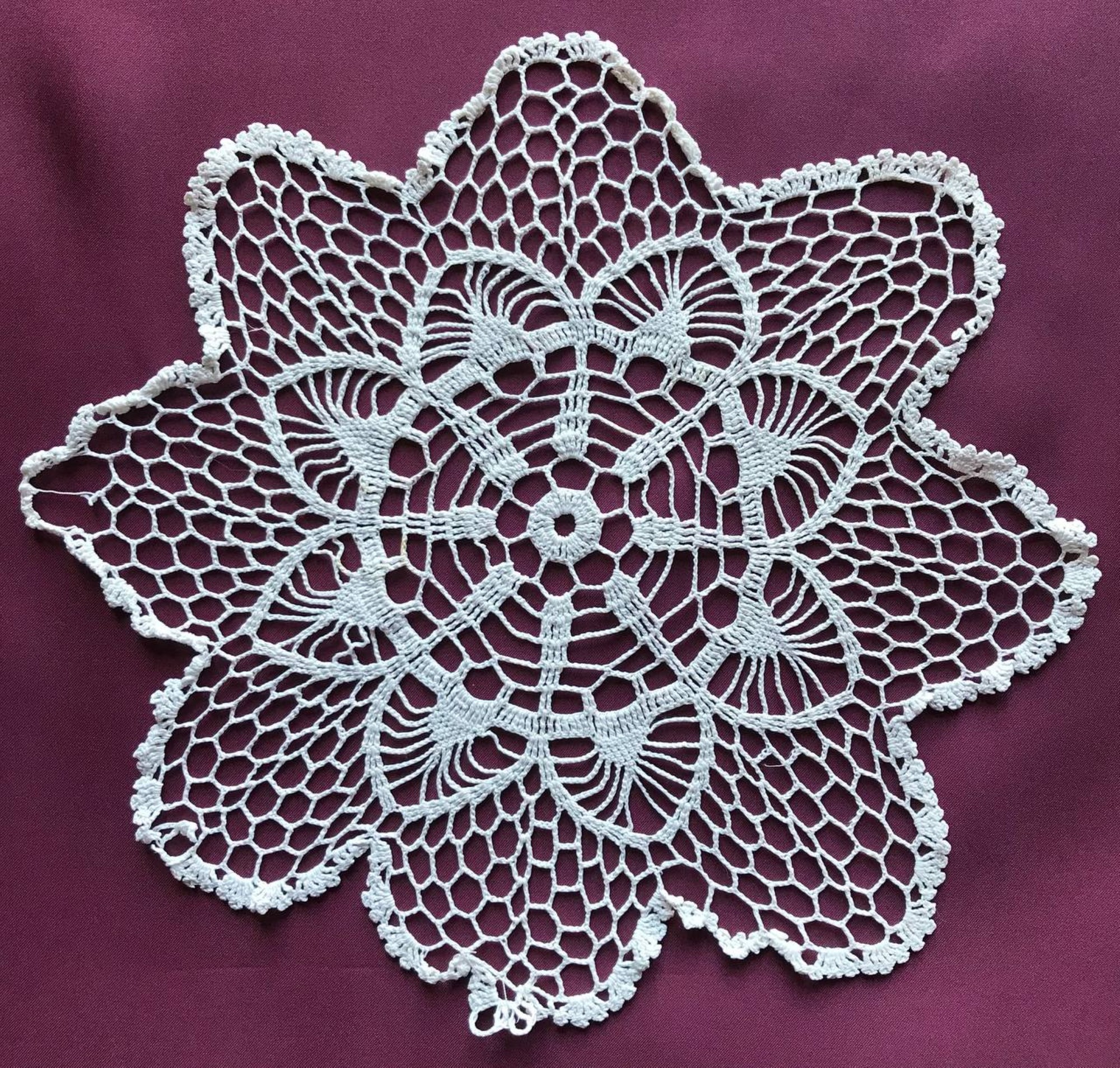 Підпис під фото: Гачкована серветка, у виконанні Ігоря Жилінського, діаметром 36 сантиметрів -