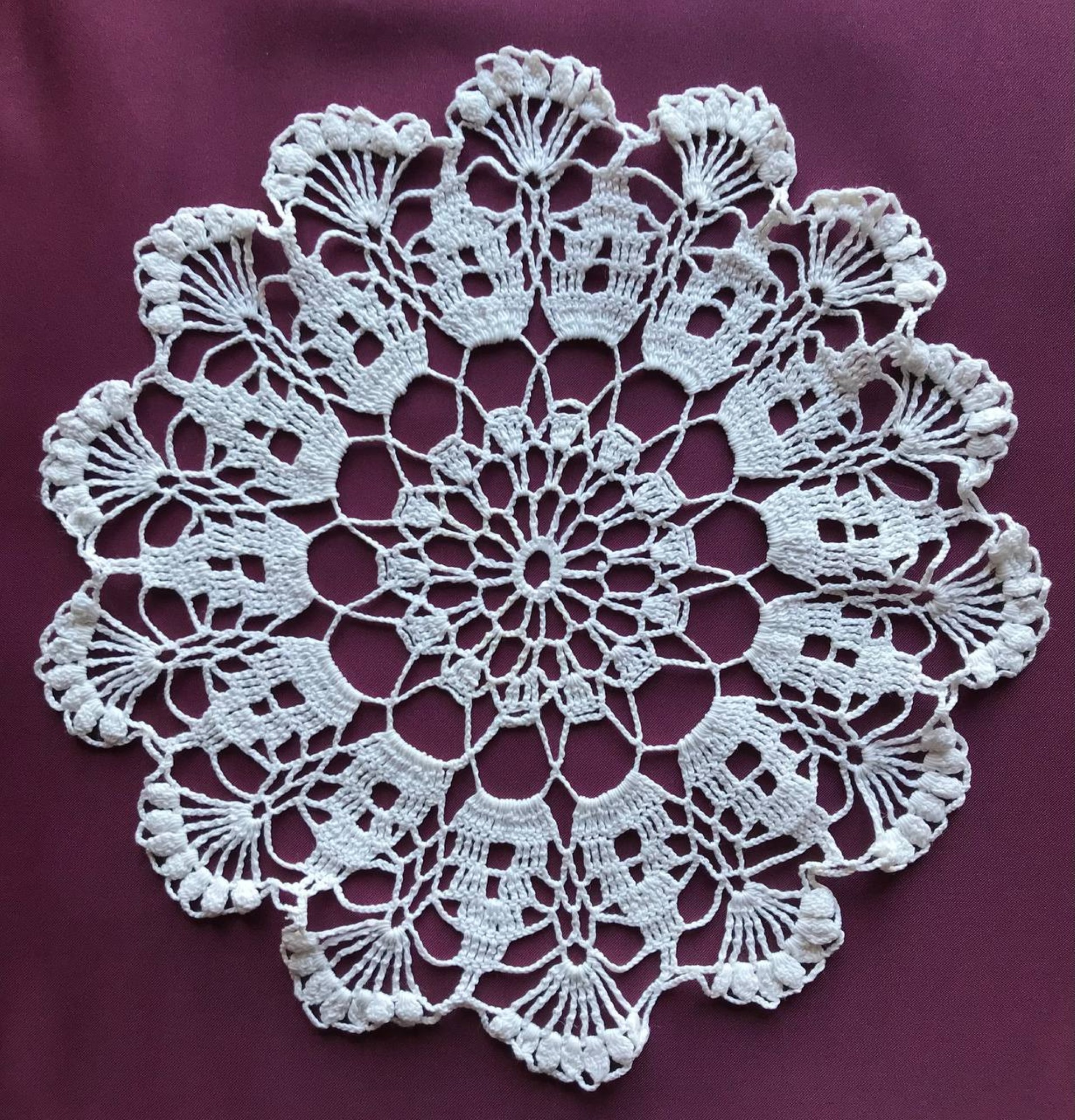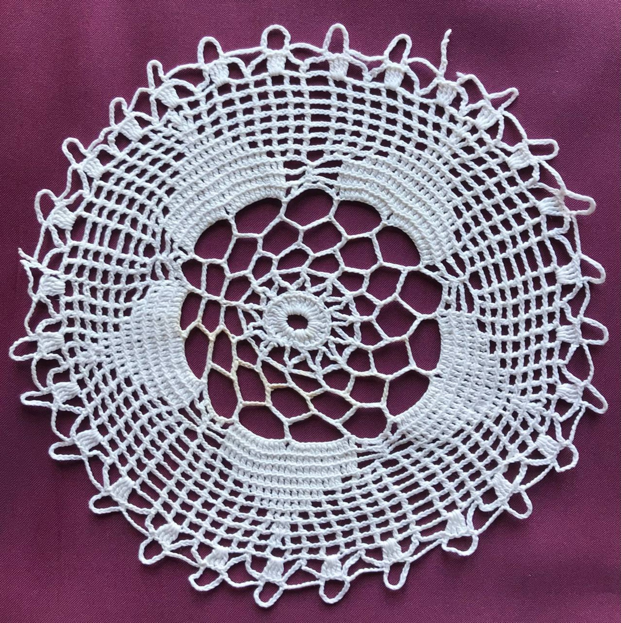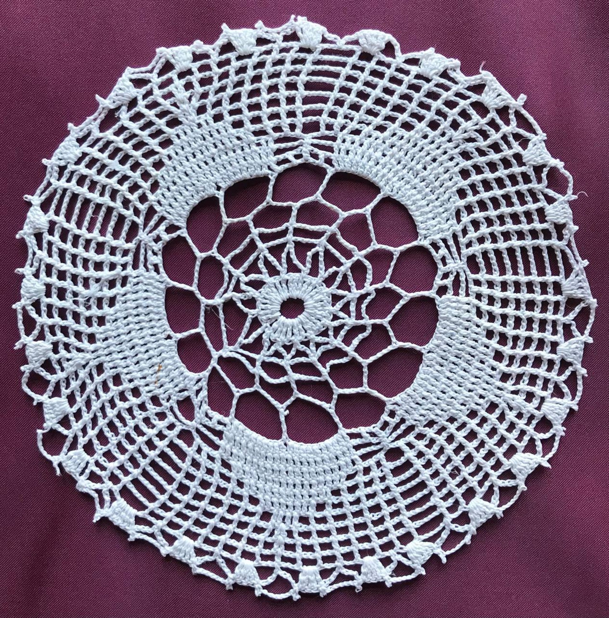 Підпис під фото: Гачкована серветка, у виконанні Ігоря Жилінського, діаметром 39 сантиметрів -
