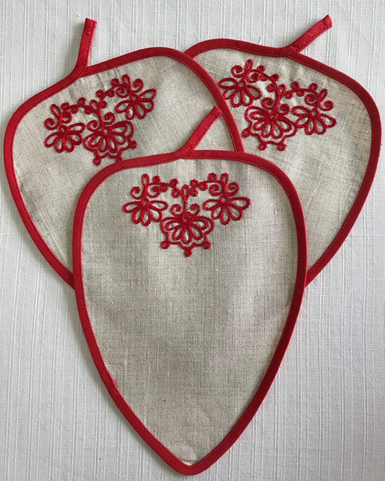 Підпис під фото: Ручна вишивка Ігоря Жилінського нитками, 3 екземпляри, розміром 24 на 17 сантиметрів -