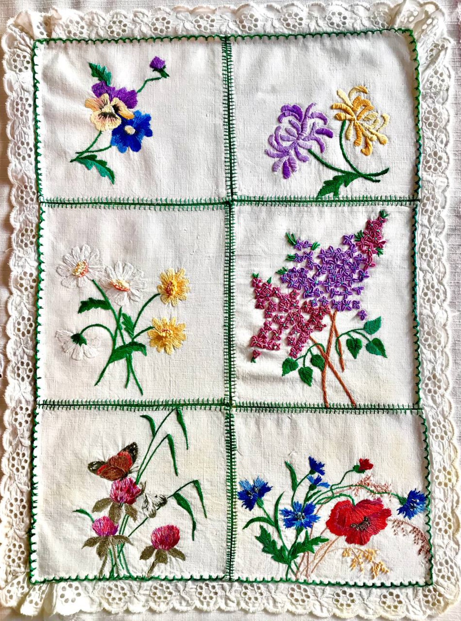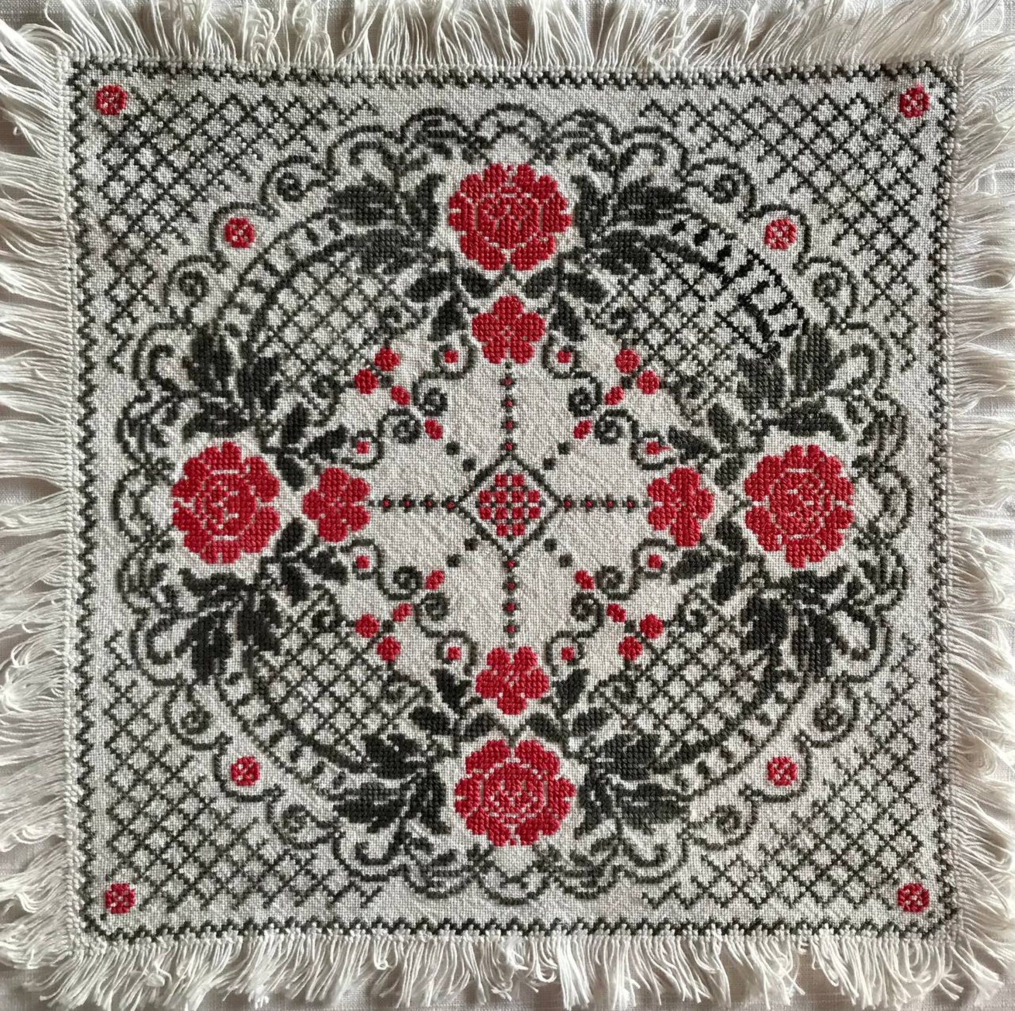 Підпис під фото: Ручна вишивка Ігоря Жилінського нитками, 6 екземплярів, розміром 20 на 20 сантиметрів -