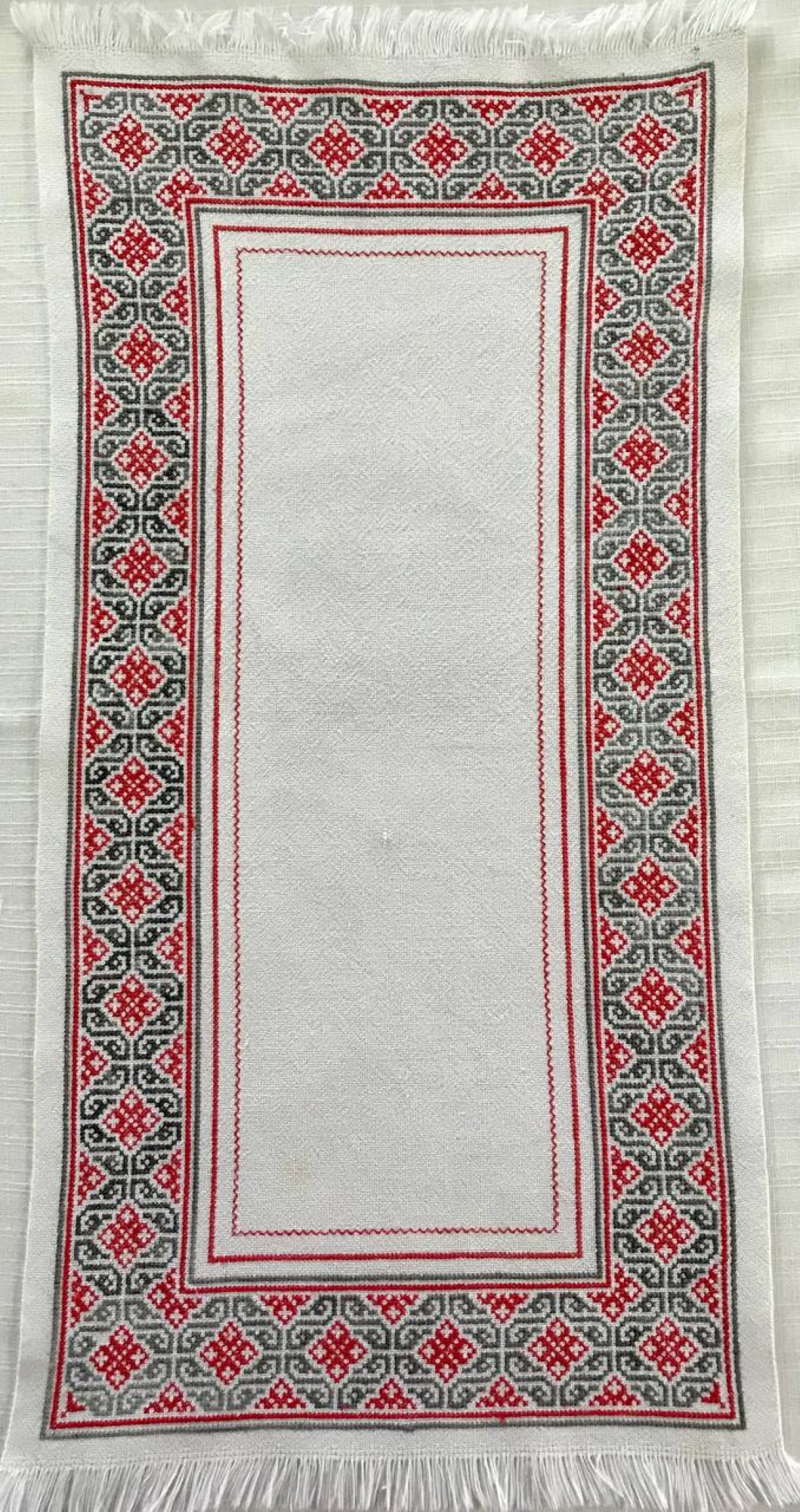 Підпис під фото: Ручна вишивка Ігоря Жилінського нитками, розміром 80 на 20 сантиметрів -