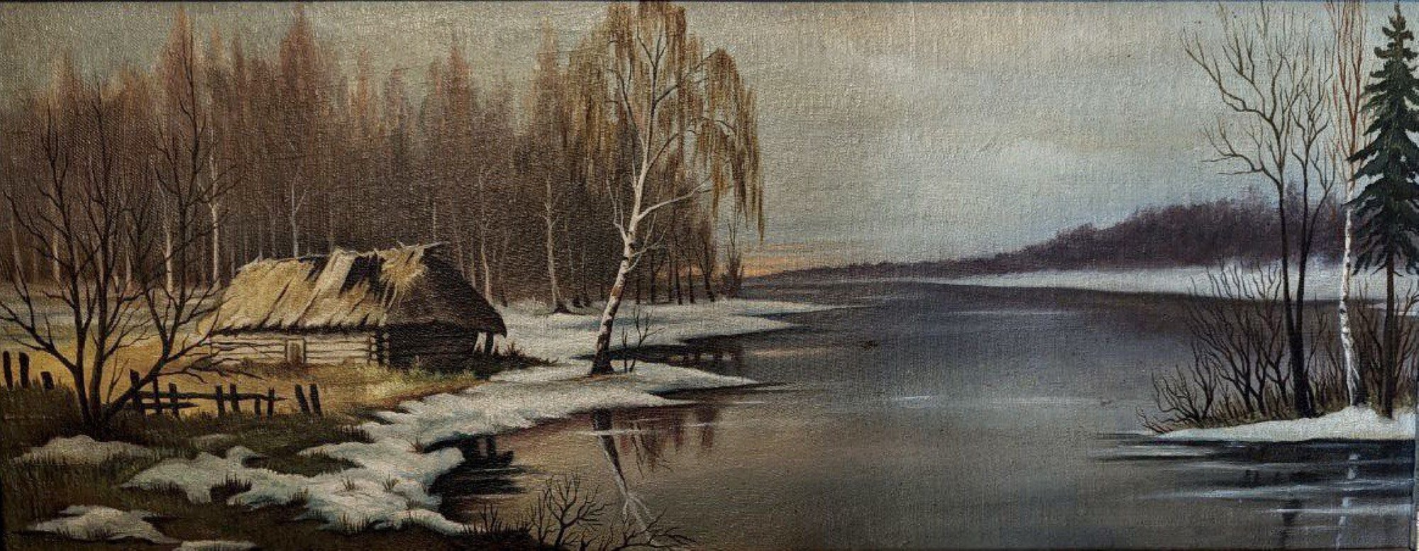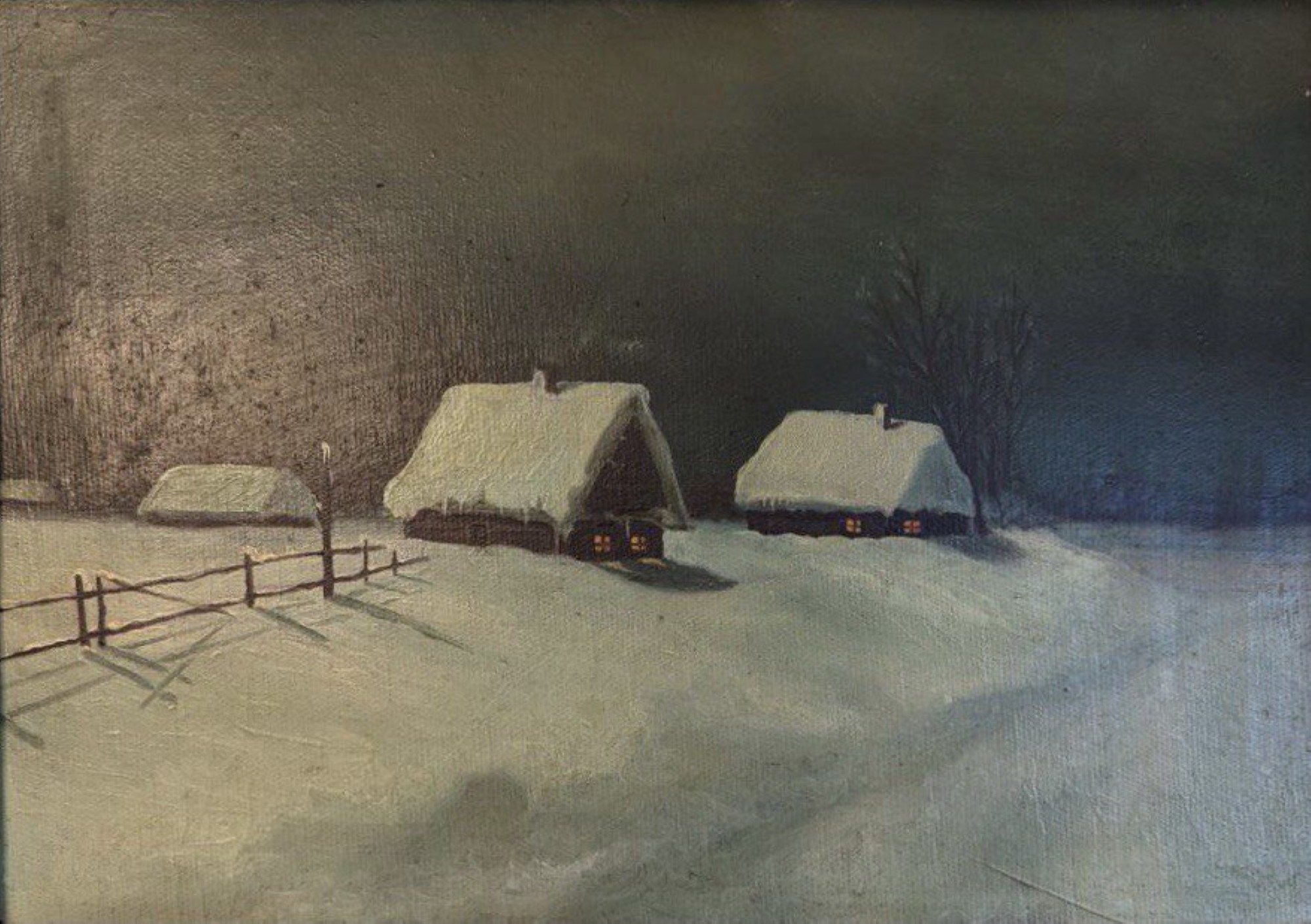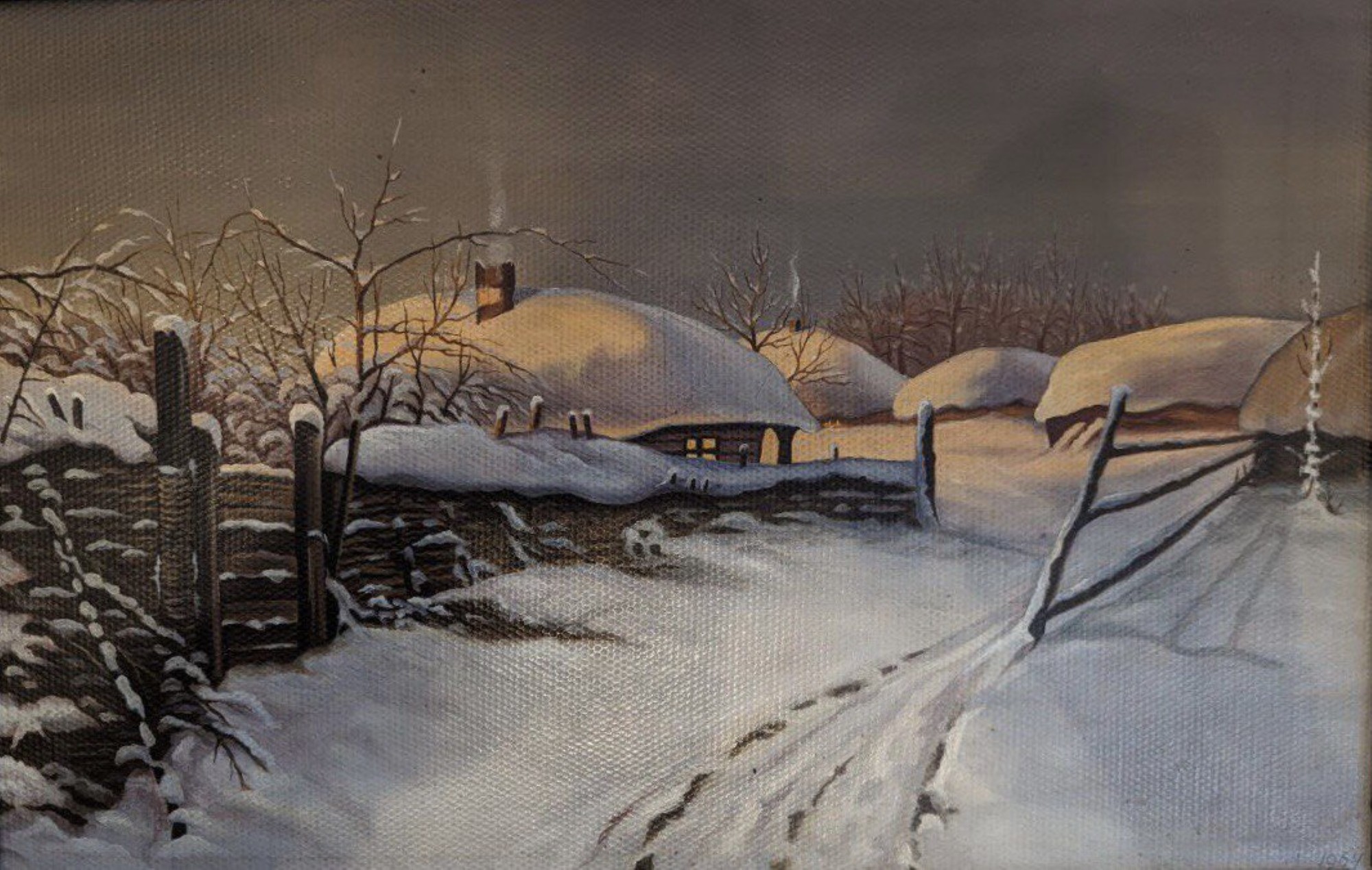 Підпис під фото: «Зима», розміром 39 на 25 сантиметрів, олія, картон -
