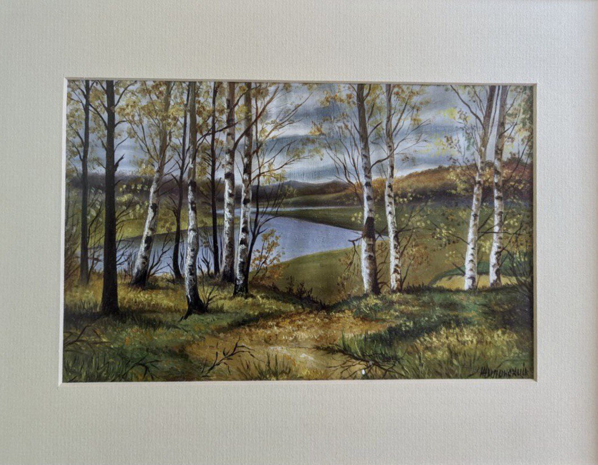Підпис під фото: «Осінь», розміром 28 на 18 сантиметрів, акварель, картон -