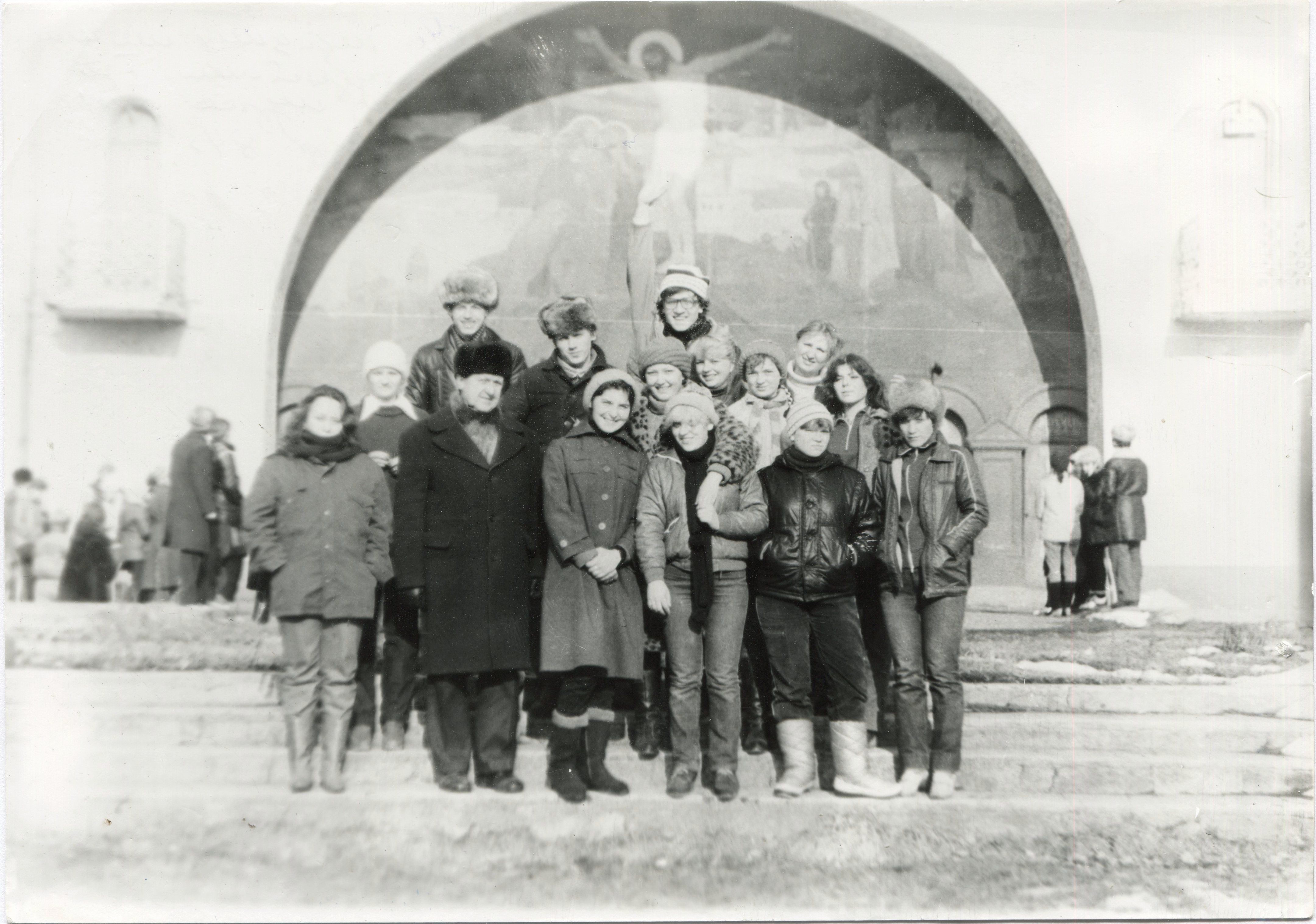 На козацьких могилах зі студентами першого курсу кафедри режисури. Лютий 1984 року. Другий ліворуч Ігор Жилінський в першому ряду -