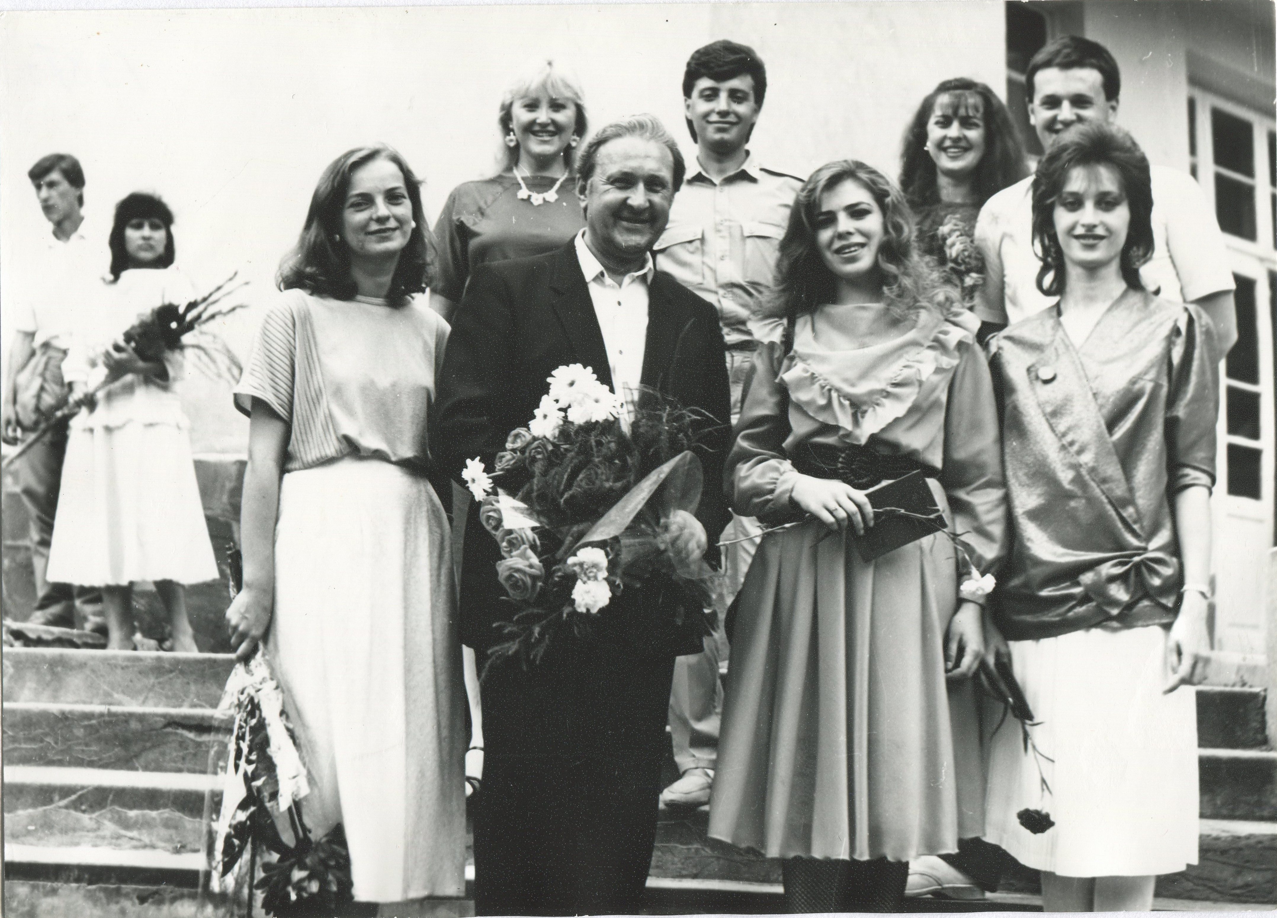 Голова Державної екзаменаційної комісії І. Ф. Жилінський (посередині). Місто Самбір Львівської області, культосвітнє училище, 1984 рік -