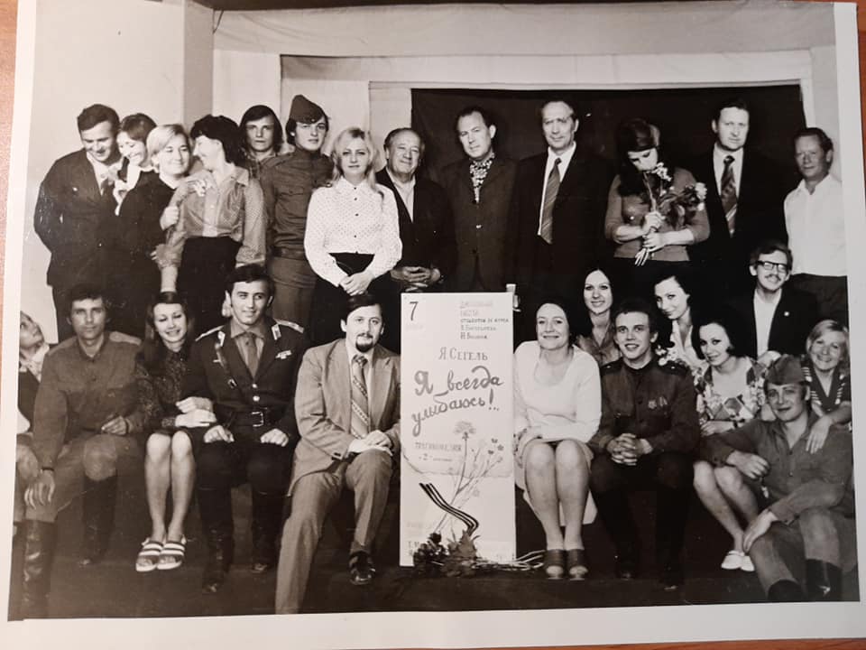Випускна дипломна вистава за п'єсою Якова Сегеля «Я завжди посміхаюсь...», 1976 рік. Постановка і сценографія Володимира Богатирьова. Куратор групи – Ігор Жилінський (другий з правої сторони в другому ряду) -